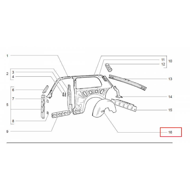 Passage de roue arrière gauche pour les modèles avec amortisseurs dans l'aile.