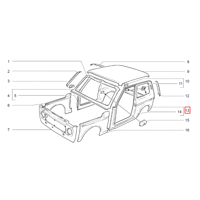 Côté de caisse Droit complet (aile) pour tout Niva