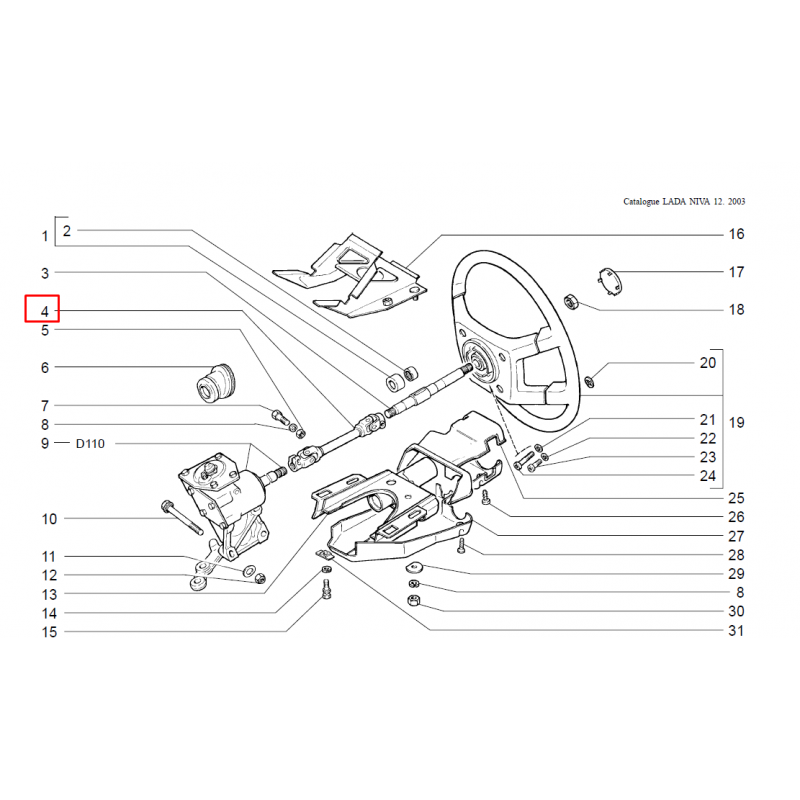 Arbre intermédiaire de direction pour boitier avec arbre long.