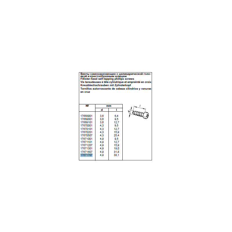 Vis Taraudeuse 4.9x38.1mm