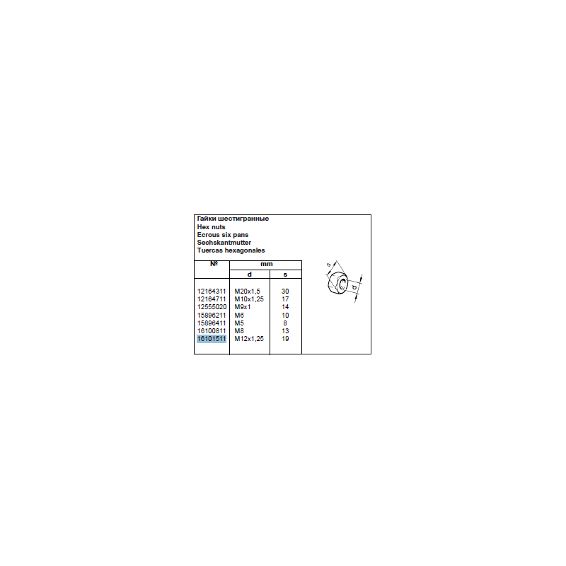 Ecrou M12X125